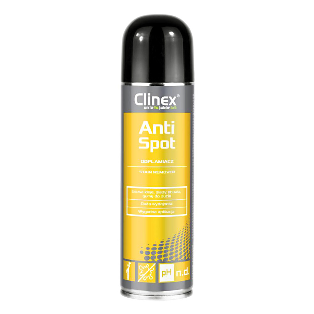 - Odstraňuje mimořádně odolné skvrny – Anti-Spot je vysoce účinný odstraňovač skvrn. Odstraňuje žvýkačky, lepidla, dehet a bitumen, tiskařskou a razítkovou barvu a vosk na svíčky. Bez námahy si poradí se zbytky štítků, samolepicích fólií a přírodních pryskyřic. Potřebujete odstranit odolné skvrny? Anti-Spot je perfektním řešením.