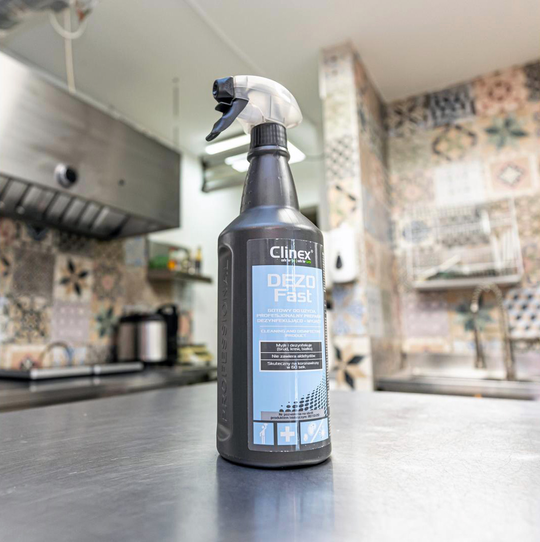 CLINEX DEZOFAST je vysoce účinný dezinfekční a čisticí prostředek bez aldehydů, ideální pro profesionální použití. Jeho účinnost byla potvrzena výzkumem provedeným Slezskou univerzitou v Katovicích. DEZOFast se vyznačuje výjimečnou baktericidní, virucidní a fungicidní účinností, díky čemuž je nepostradatelný v oblastech vyžadujících vysoké hygienické standardy.