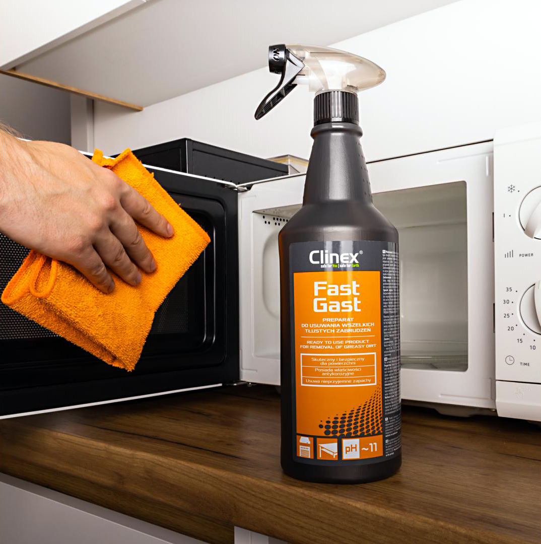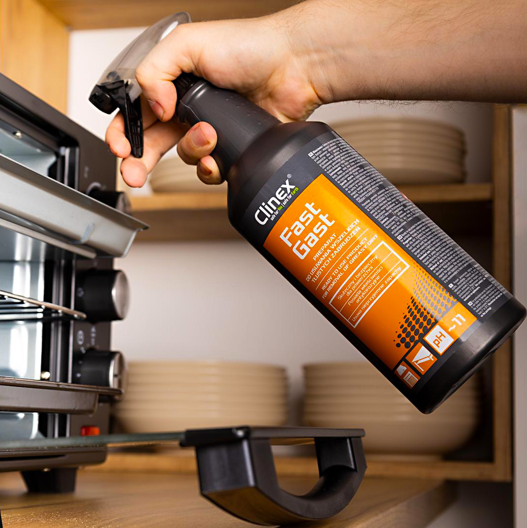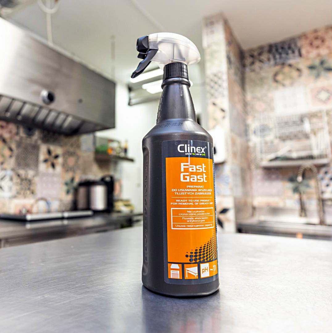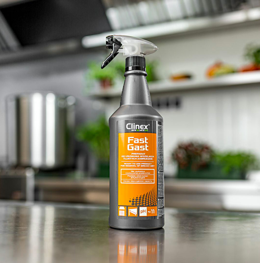 Clinex FastGast je profesionální čisticí prostředek připravený k okamžitému použití, navržený pro efektivní odstranění všech typů mastných a olejových skvrn. Jeho jedinečná schopnost emulgovat tuky umožňuje účinné rozpuštění i těch nejodolnějších olejových a mastných usazenin, stejně jako připálených zbytků jídla. Produkt nezanechává na čištěných površích žádné nežádoucí šmouhy ani stopy, čímž zajišťuje perfektní vzhled. Navíc disponuje příjemnou, svěží vůní, která osvěžuje pracovní prostředí. Clinex FastGast je certifikován Národním hygienickým ústavem pro svou zdravotní nezávadnost, což zaručuje jeho bezpečnost při použití v potravinářském průmyslu.