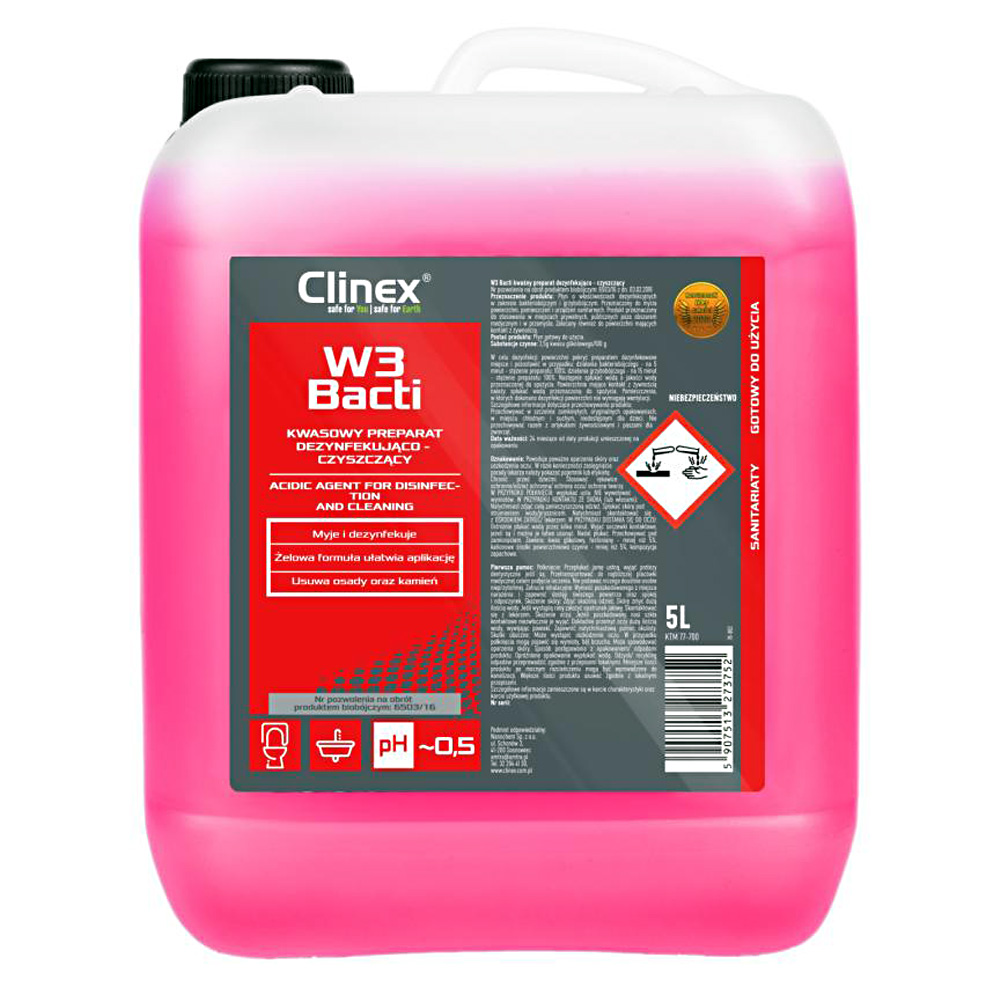Clinex W3 Bacti je vysoce účinný dezinfekční prostředek s pokročilými vlastnostmi, speciálně navržený pro profesionální použití. Jeho silné složení je účinné v boji proti bakteriím a plísním, což zajišťuje vysokou úroveň hygieny v široké škále prostředí.