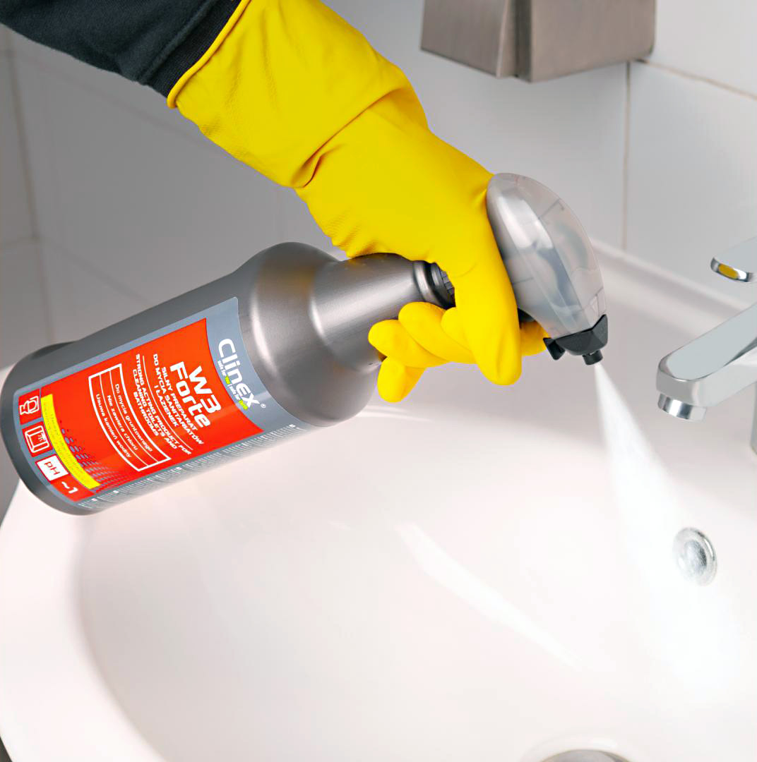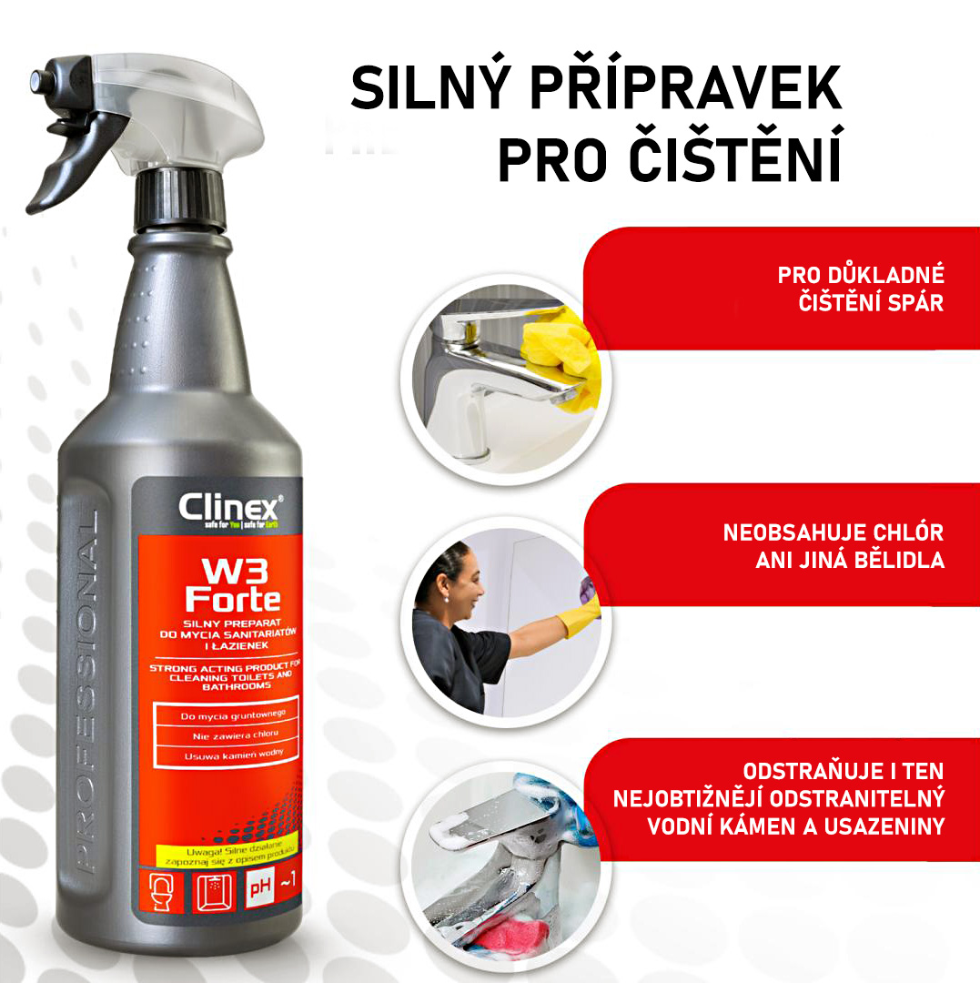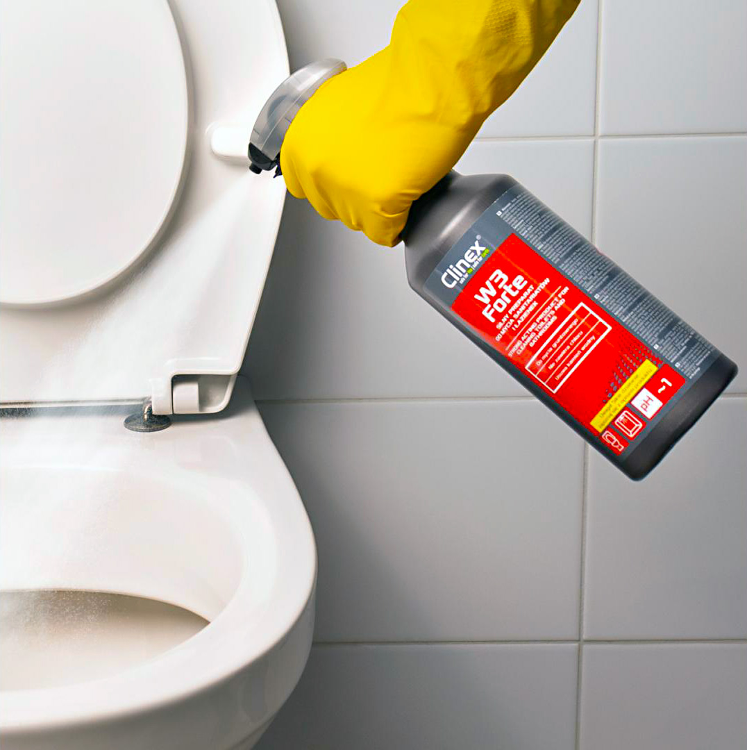 Vysoce účinný kyselý čisticí prostředek určený pro důkladné čištění a odstraňování odolných skvrn v sociálních zařízeních a koupelnách.