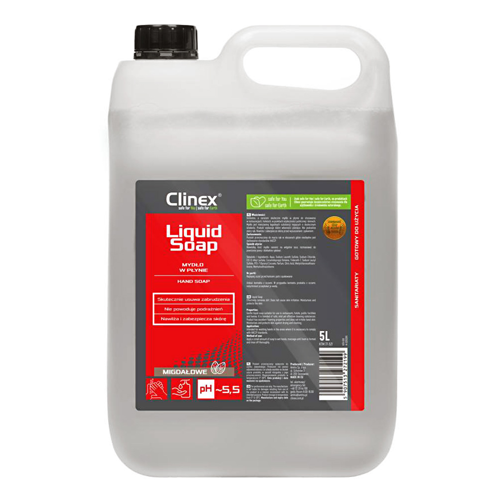 Tekuté mýdlo Clinex je dostupné také v praktickém 5litrovém balení, ideálním pro doplňování dávkovačů v provozech s vysokou frekvencí používání, což zajišťuje efektivní a ekonomický provoz.
